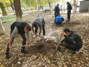 “Worthy deeds to the anniversary of Victory” is the leitmotif of the events of the Year of Memory and Glory, dedicated to the 75th anniversary of Victory in the Great Patriotic War. Such a significant event took place on September 20, 2020 on the territory of the Museum of Military Glory. The fighters of the Pavlodar search and research squad “Maidan Zholy”, representatives of the “Give the Earth a Garden” Foundation, teachers and students of the primary education-219 group of the humanitarian department of VKINEU, the head of the volunteer squad of the college Smagul A.T. Young pine seedlings were planted and watered in the alley. Now they will be provided with regular care and over time the alley will delight the eyes of the townspeople.