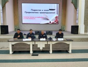 On April 17, 2025, students with law enforcement agencies were held at the High College of INU. The main issues that were affected in the conversation are the goals and objectives of the OPM “Teen”, the responsibility of minors for offenses (hooliganism, theft, the use of alcohol and narcotic substances, smoking in public places, etc.),